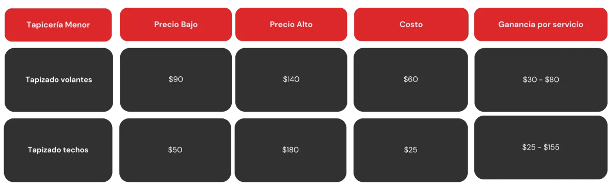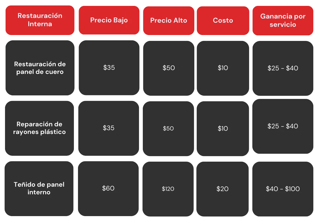Servicio y productos complementarios: Desde reparación de roturas, rayones y desteñidos en partes de plástico, vinilo o cuero, hasta la instalación de techos corredizos premium.