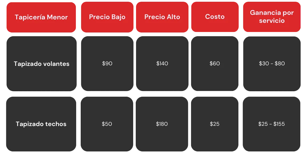 Tapicería menor: Reparación y mejora de asientos y superficies desgastadas.