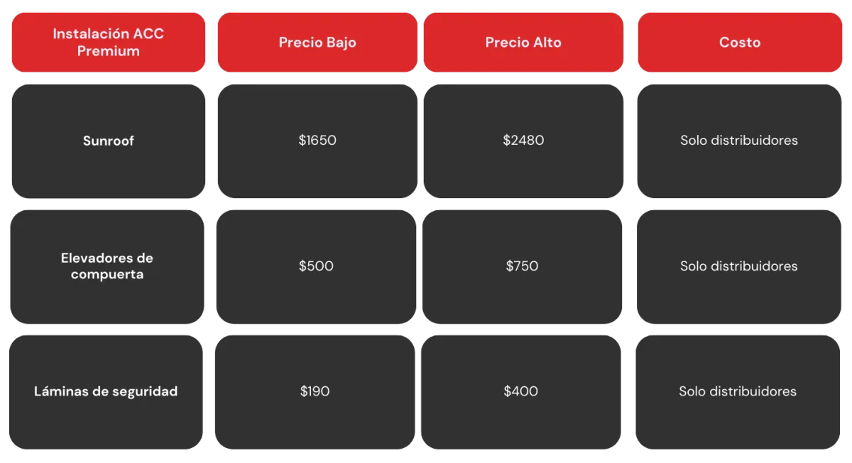 Instalación de accesorios premium: Mejora el estilo y la funcionalidad de tu vehículo con accesorios de alta calidad.